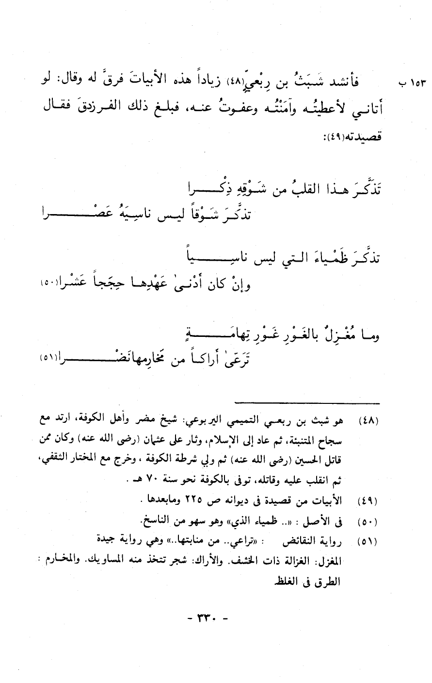 فأنشد شبث بن ربعيٍ زياداً هذه الأبيات فرق له وقال: لو أتاني لأعطيته وآمنته وعفوت عنه, فبلغ ذلك الفرزدق فقال قصيدته: