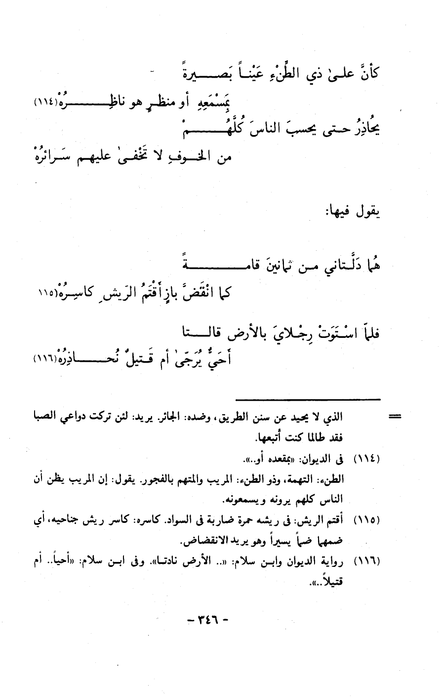 كأن على ذي الطنء عيناً بصيرةً ... بمسمعه أو منظرٍ هو ناظره