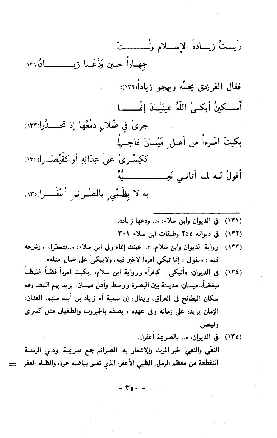 رأيت زيادة الإسلام ولت ... جهاراً حين ودعنا زياد