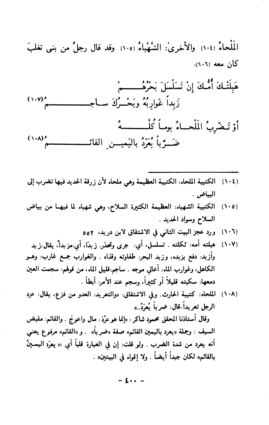 الملحاء والأخرى: الشهباء وقد قال رجلٌ من بني تغلب كان معه: