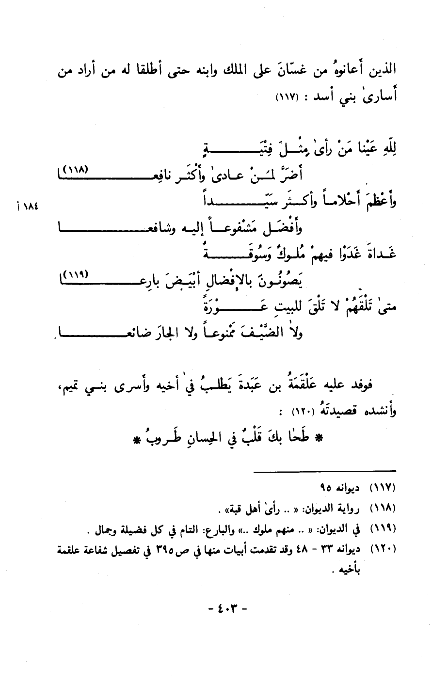 فوفد عليه علقمة بن عبدة يطلب في أخيه وأسرى بني تميم, وأنشده قصيدته: