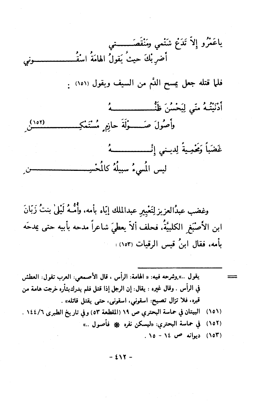 يا عمرو إلا تدع شتمي ومنقصتي ... أضربك حيث يقول الهامة اسقوني
