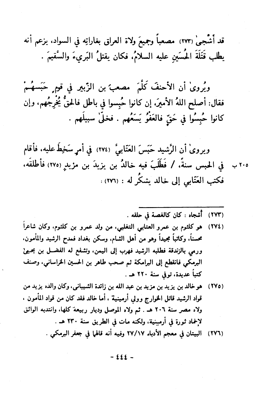 ويروى أن الرشيد حبس العتابي في أمرٍ سخط عليه، فأقام في الحبس سنةً، / فطلب فيه خالد بن يزيد بن مريدٍ فأطلقه، فكتب العتابي إلى خالد يشكر له: