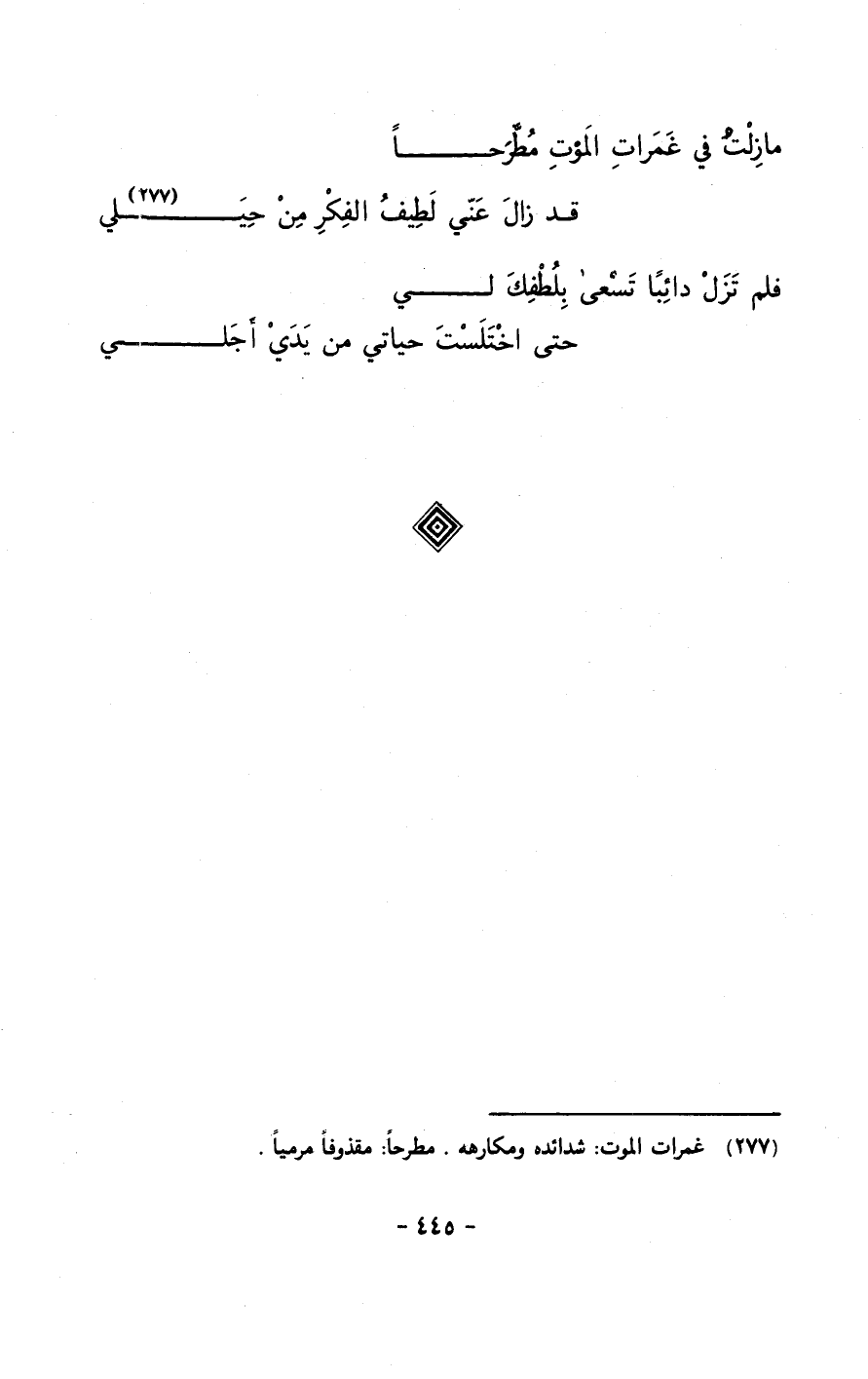 ما زلت في غمرات الموت مطرحاً ... قد زال عني لطيف الفكر من حيلي
