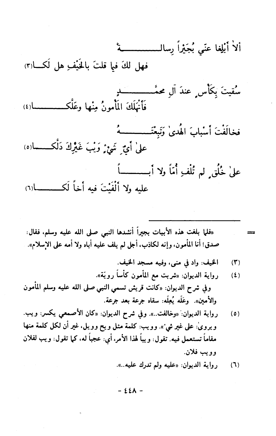 ألا أبلغا عني بجيراً رسالةً ... فهل لك فيما قلت بالخيف هل لكا