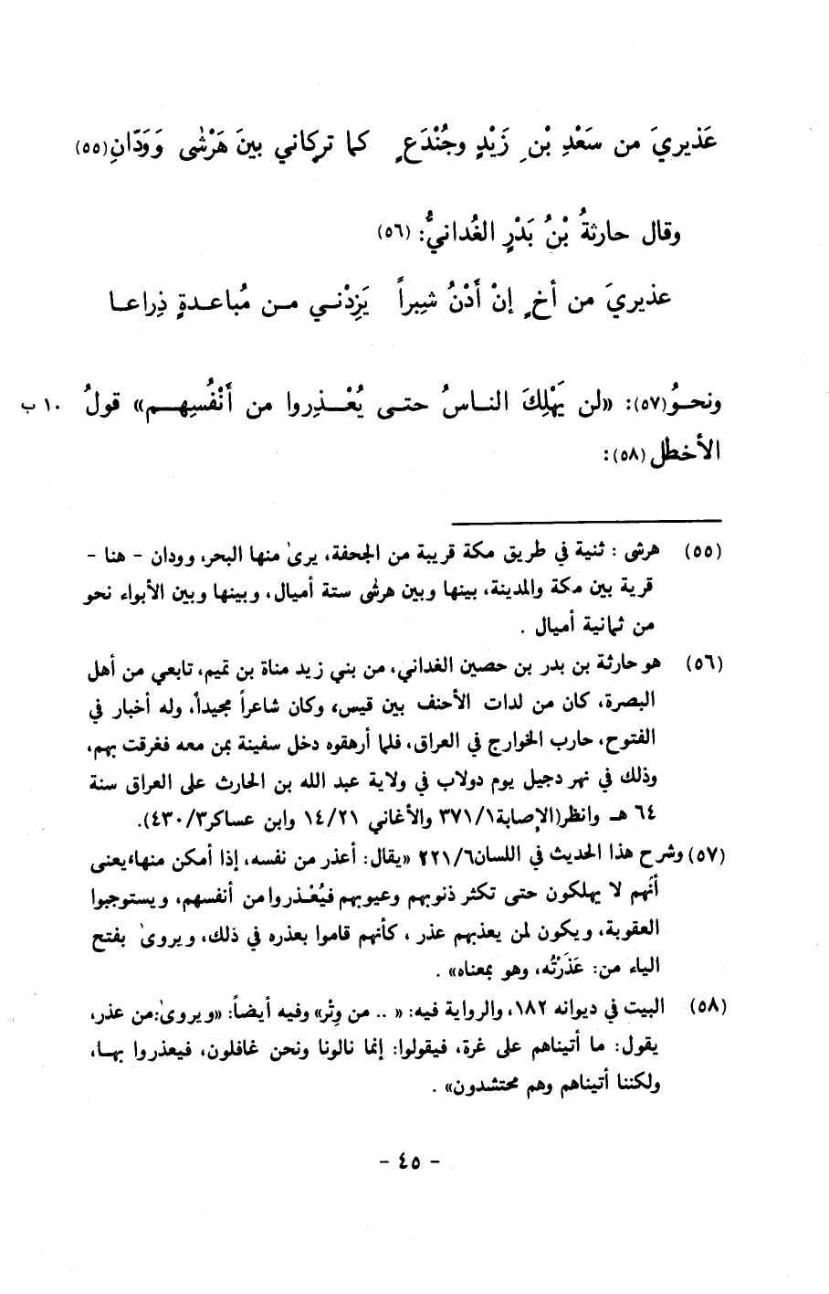عذيري من سعد بن زيدٍ وجندعٍ ... كما تركاني بين هرشى وودان