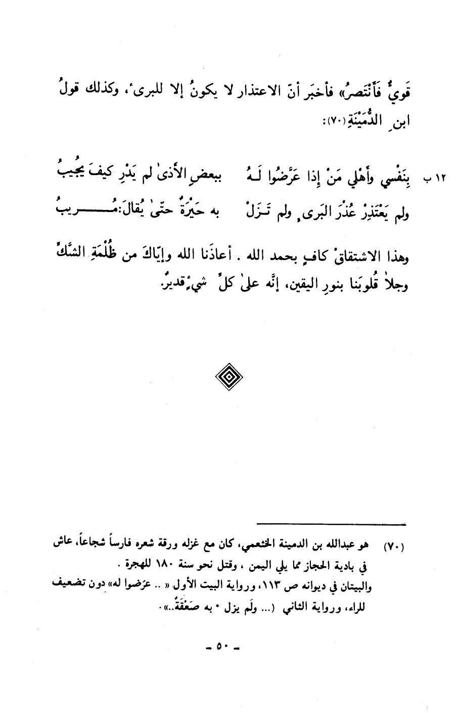 قويٌ فأنتصر)) فأخبر أن الاعتذار لا يكون إلا للبريء، وكذلك قول ابن الدمينة: