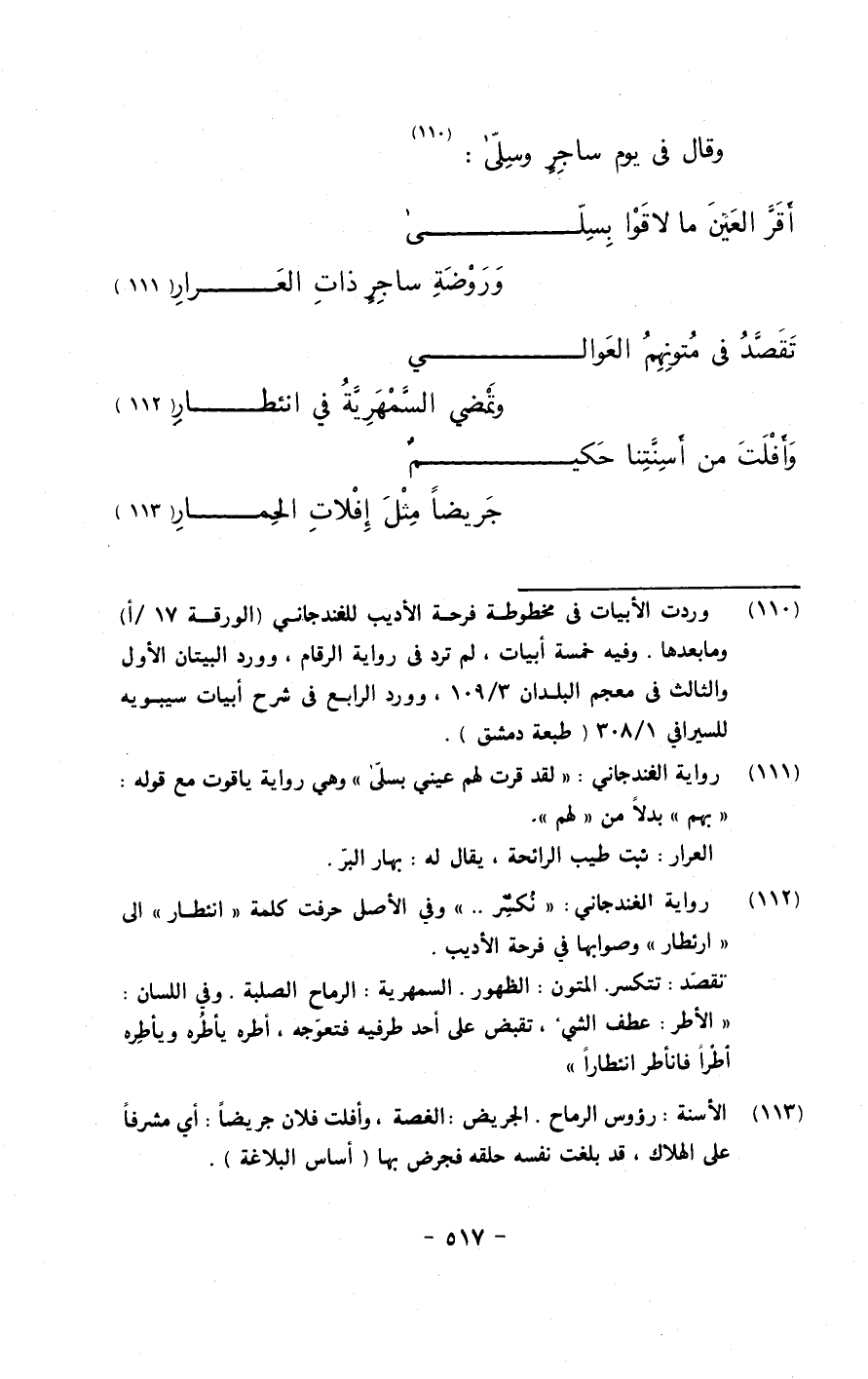 أقر العين ما لاقوا بسلى ... وروضة ساجرٍ ذات العرار