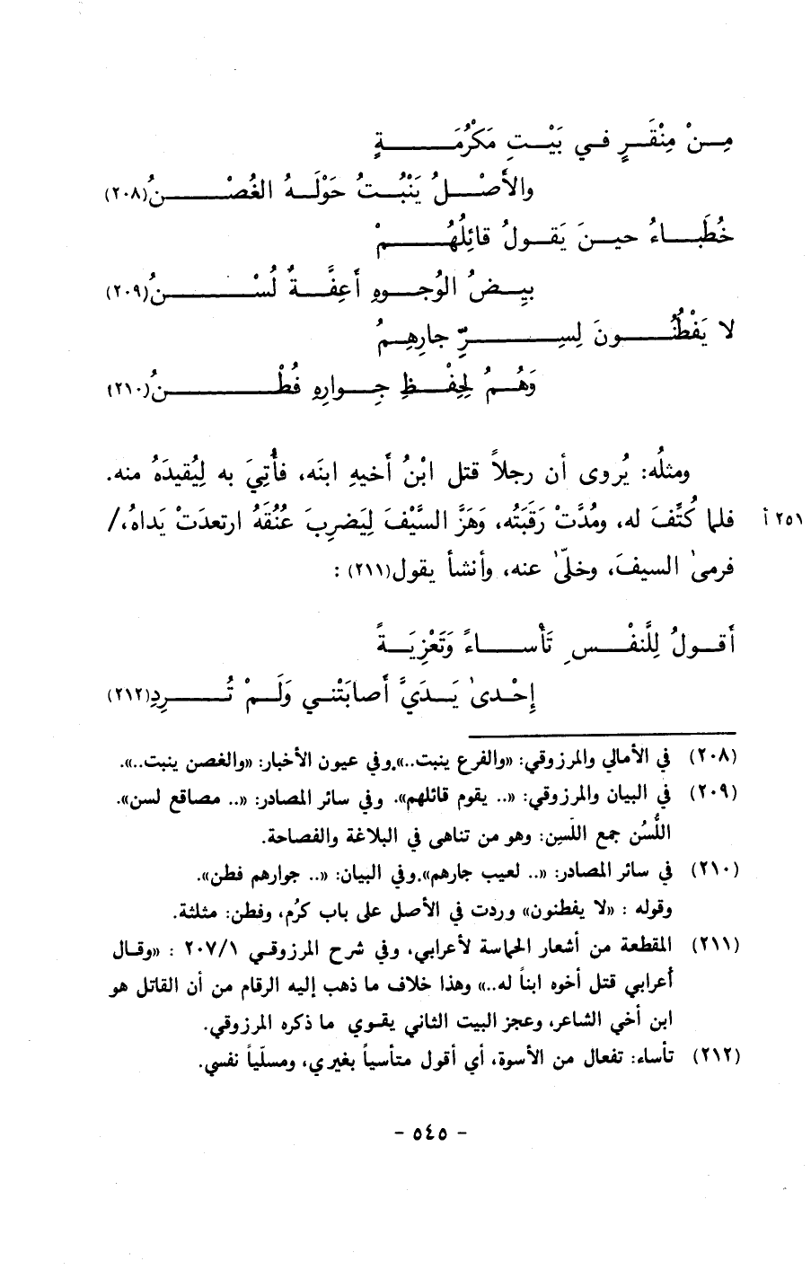 ومثله: يروى أن رجلاً قتل ابن أخيه ابنه, فأتي به ليقيده منه. فلما كتف له, ومدت رقبته, وهز السيف ليضرب عنقه ارتعدت يداه, / فرمى السيف, وخلى عنه, وأنشأ يقول: