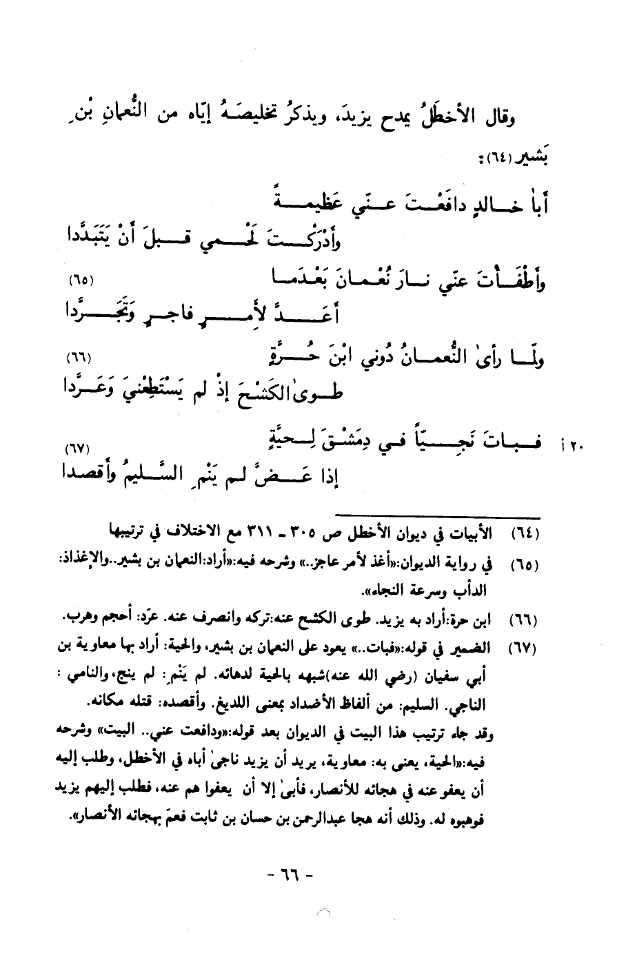 وقال الأخطل يمدح يزيد, ويذكر تخليصه إياه من النعمان بن بشير: