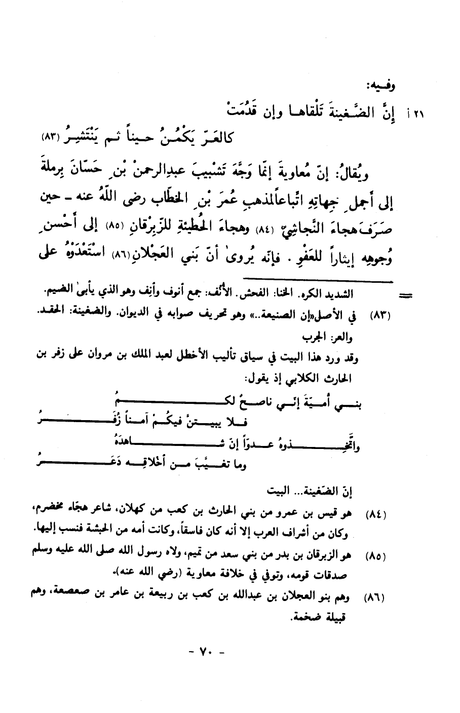 ويقال: إن معاوية إنما وجه تشبيب عبد الرحمن بن حسان برملة إلى أجمل جهاته اتباعاً لمذهب عمر بن الخطاب رضي الله عنه –حين صرف هجاء النجاشي وهجاء الحطيئة للزبرقان إلى أحسن وجوهه إيثاراً للعفو. فإنه يروى أن بني العجلان استعدوه على