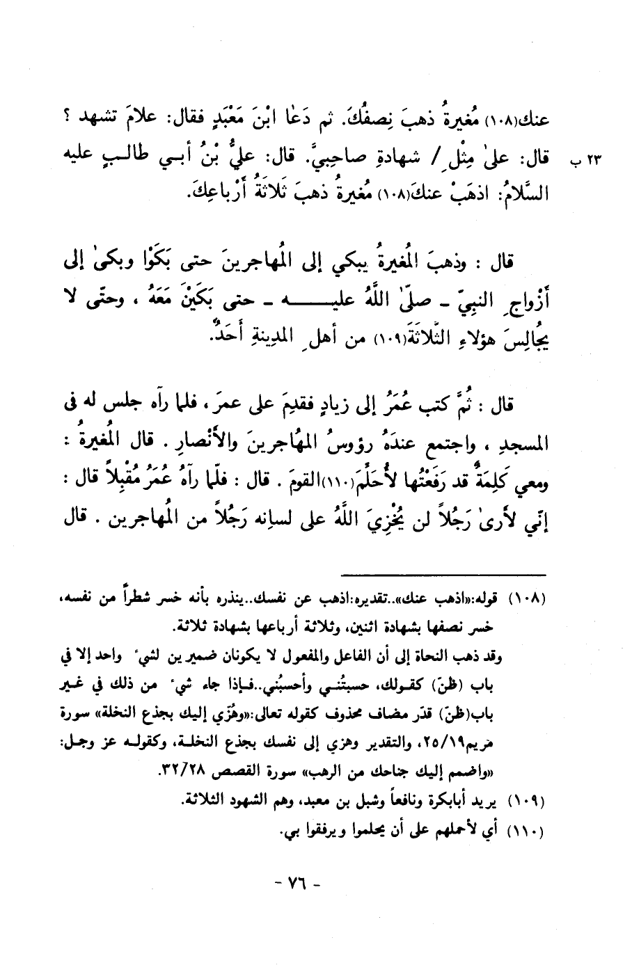 عنك مغيرة ذهب نصفك. ثم دعا ابن معبدٍ فقال: علام تشهد؟ قال: على مثل/ شهادة صاحبي. قال: علي بن أبي طالبٍ عليه السلام: اذهب عنك مغيرة ذهب ثلاثة أرباعك.