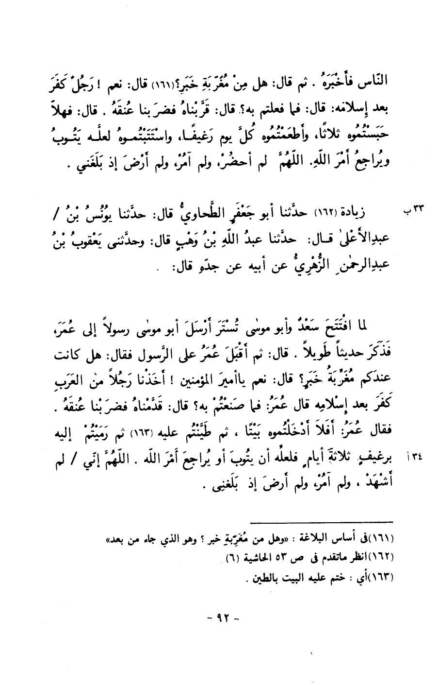 زيادة حدثنا أبو جعفرٍ الطحاوي قال: حدثنا يونس بن/ عبد الأعلى قال: حدثنا عبد الله بن وهبٍ قال: وحدثني يعقوب بن عبد الرحمن الزهري عن أبيه عن جده قال: