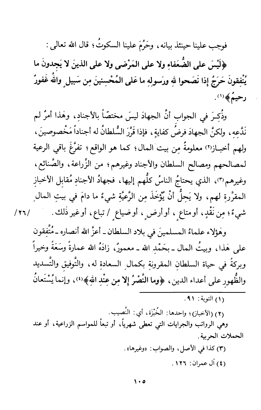 وقد أوجبَ الله على المكلَّفين نصيحةَ السلطانِ -أعزَّ الله أنصارَه - ونصيحَةَ عامَّةِ المسلمين، ففي الحديث الصحيح عن رسول الله - صلى الله عليه وسلم - أنه قال: "الدِّينُ النَّصيحةُ؛ للهِ، ولكتابهِ، ورسوله، وأئمَّةِ المسلمين، وعامَّتِهم" (¬5).