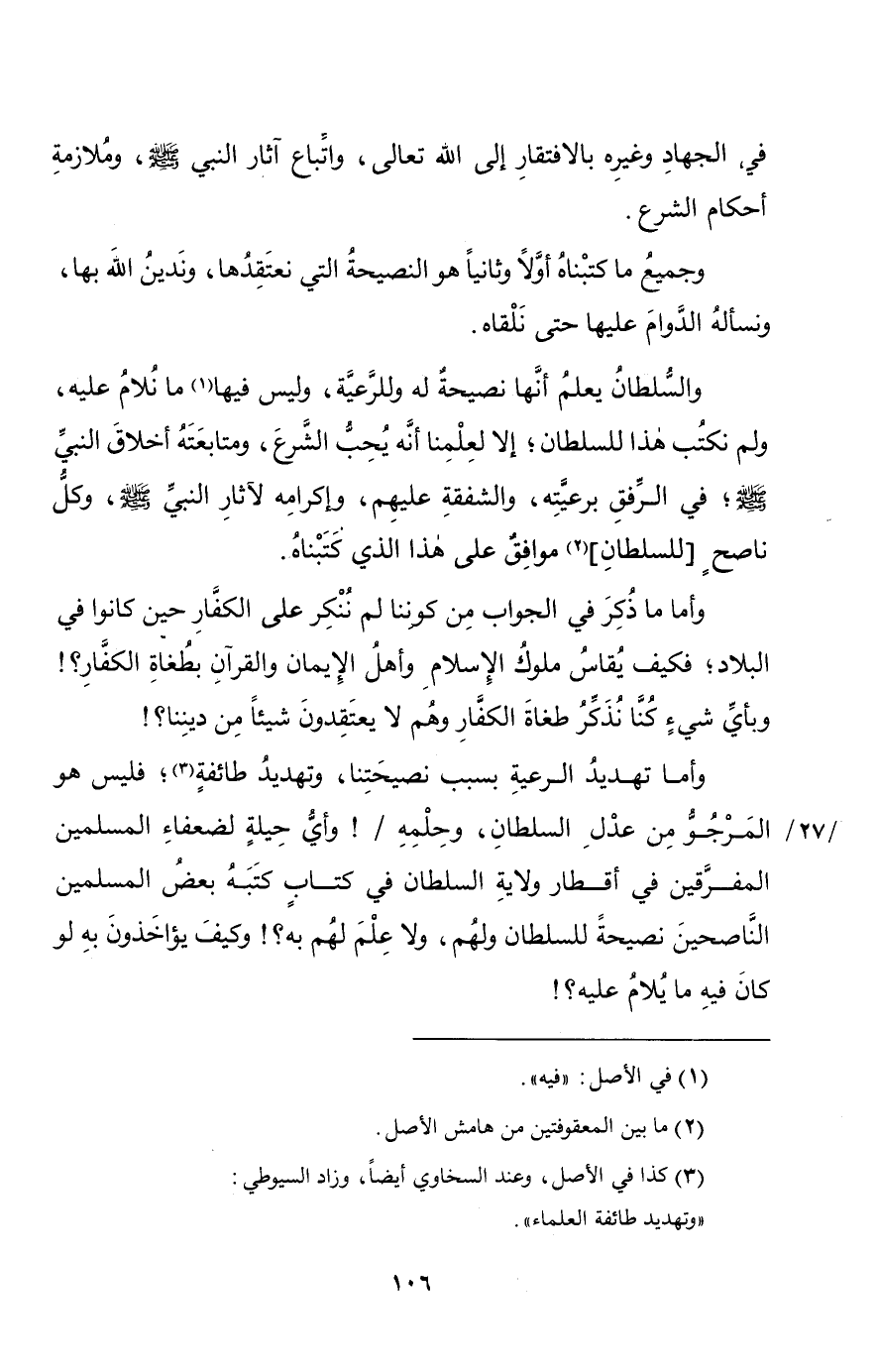 ومِن نصيحة السلطان -وفقه الله لطاعته، وتولاه بكرامته- أن تُنْهى (¬1) إليهِ الأحكام إذا جرتْ على خِلافِ قواعدِ الإسلام.