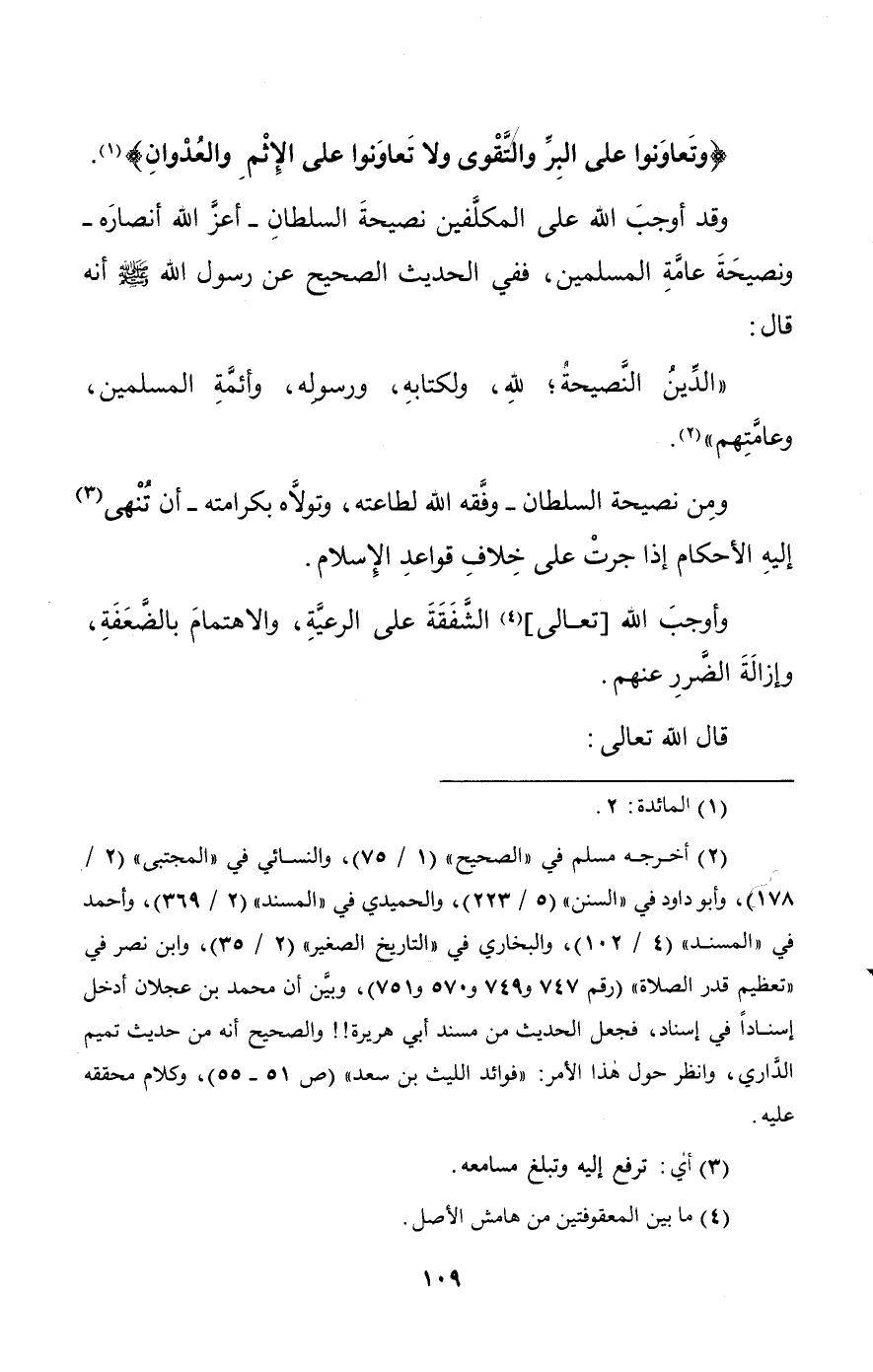 وإذا رفقَ السلطانُ بهِم؛ حَصَل له دعاءُ رسولِ الله لمن رفق بأمتِه ونصره على أعدائِه؛ فقد قال الله تعالى: {إن تَنصروا اَللهَ يَنصُركُم} (¬2).