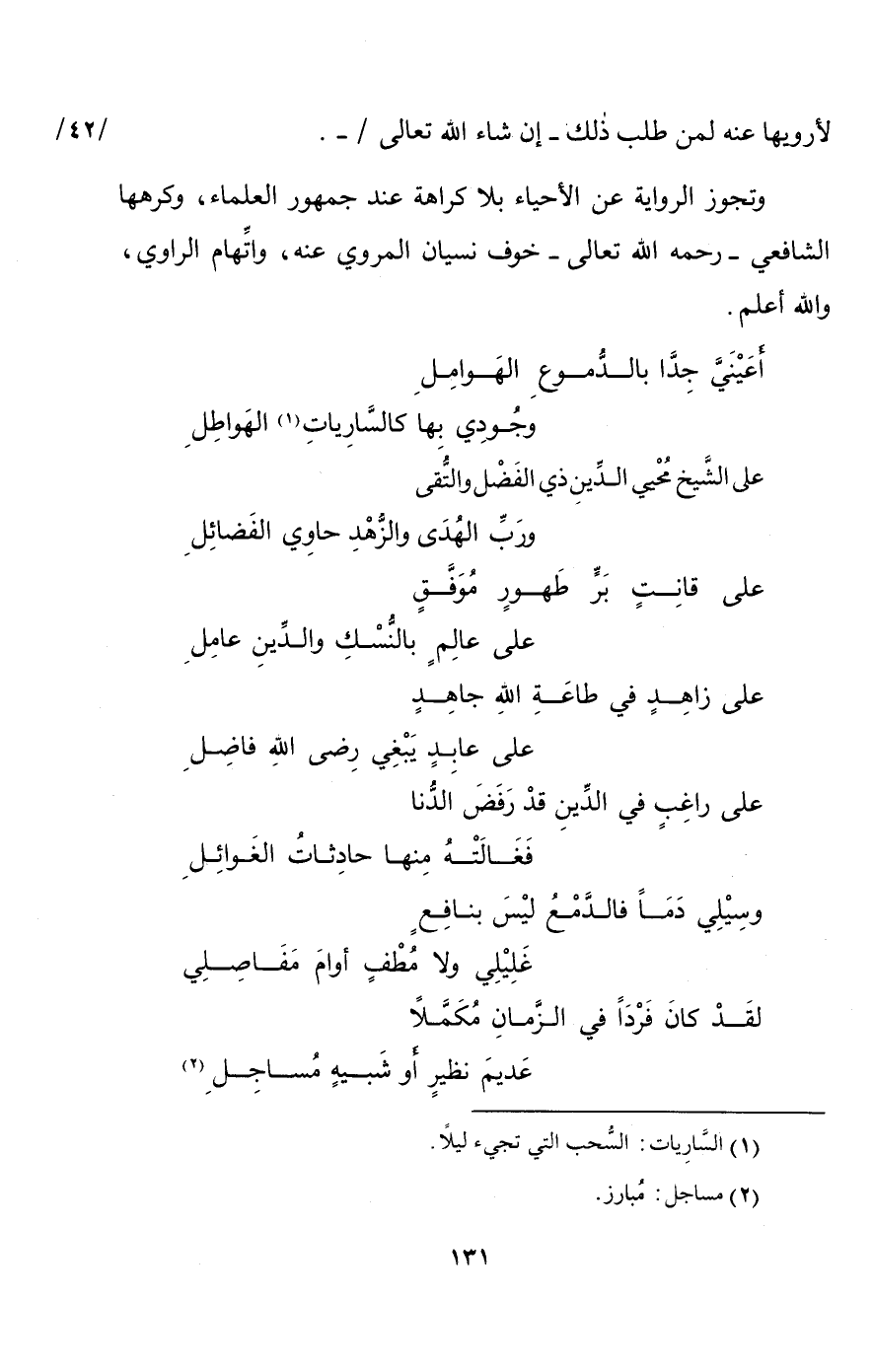 رزِيَّةُ (مُحْيي الدين) قد عَمَّتِ الوَرَى ... فلَسْتَ تَرَى إلَّا حَزيناً مُفَكِّرا