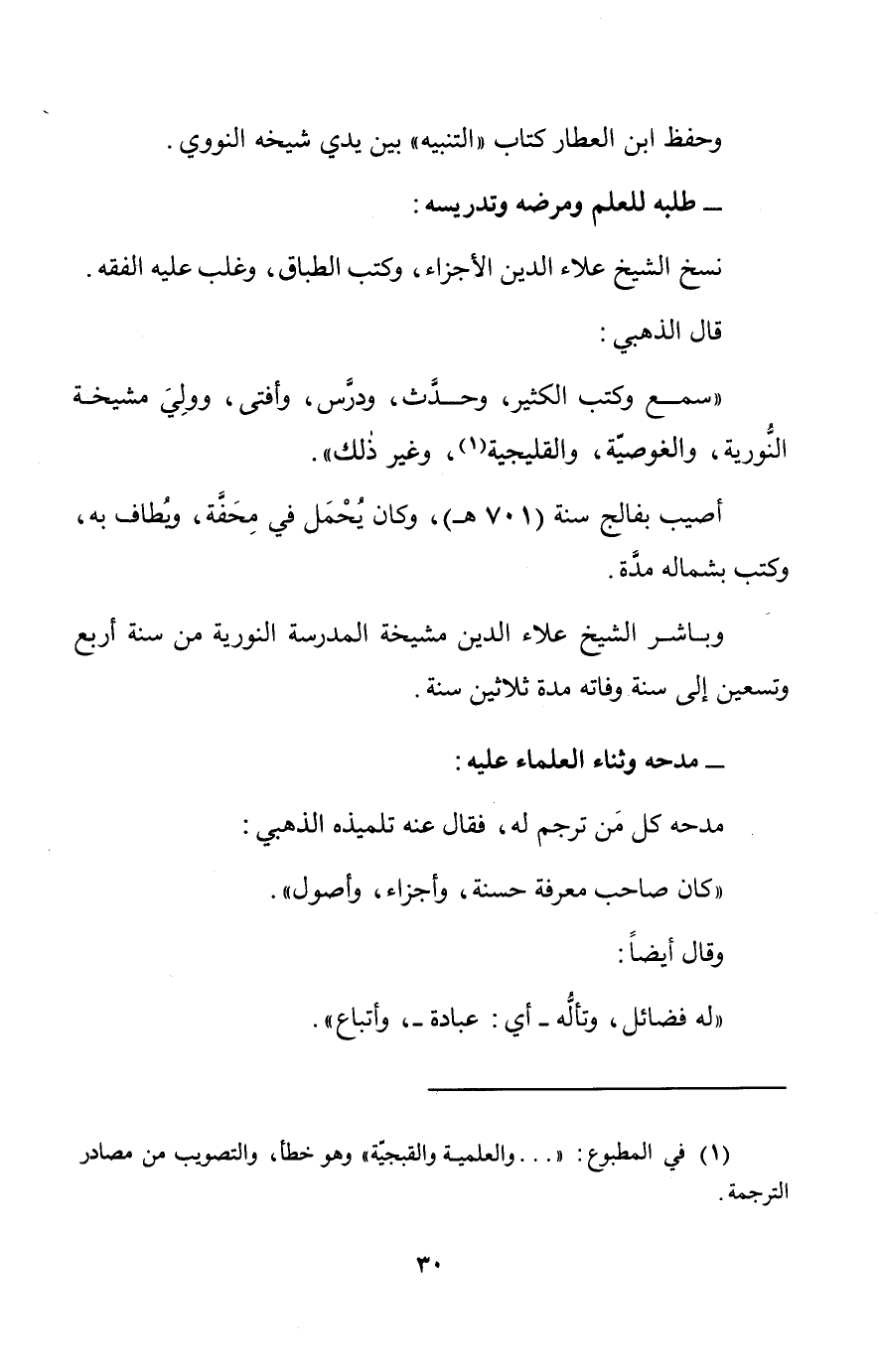 وحفظ ابن العطار كتاب "التنبيه" بين يدي شيخه النووي.
