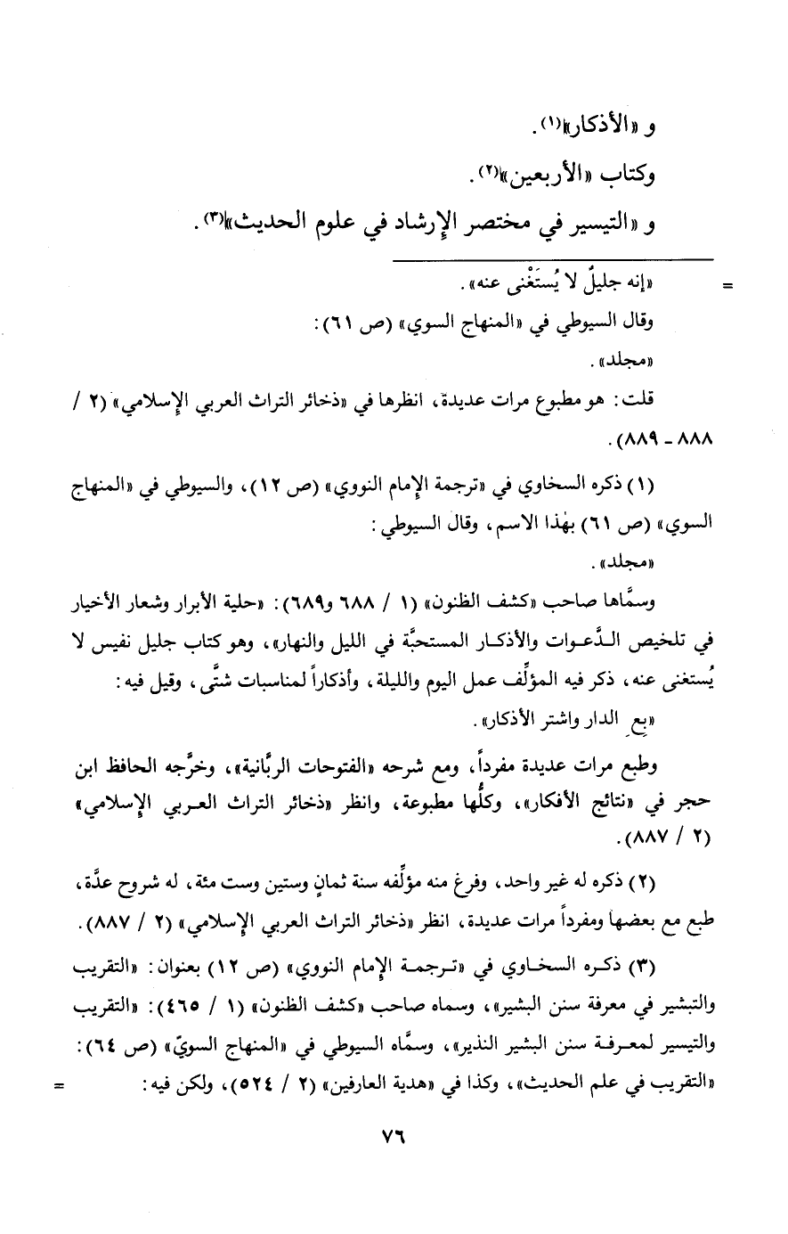 (¬1) ذكره النووي في "شرح صحيح مسلم" (8/ 43)، وفي "المجموع" (2/ 162 و 3/ 396) وعزاه له: الذهبي في "تذكرة الحفاظ" (4/ 1472) واليافعي في "مرآة الجنان" (4/ 182) وابن قاضي شهبة في "طبقات الشافعية" (2/ 156)، والسيوطي في "المنهاج السوي" (62)، وقال: "مجلد".