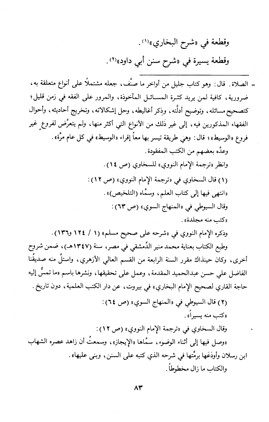 والسخاوي في "ترجمة الإمام النووي" (ص 12 - 13)، وعرفه بقوله: "الواقعة -أي: الأسماء واللغات- في "المختصر" للمُزني، و"الوسيط"، و"الوجيز"، و"التنبيه"، و "المهذب"، و"الروضة"، مات عنه مُسَوَّدة، فبيَّضه المِزِّي"!