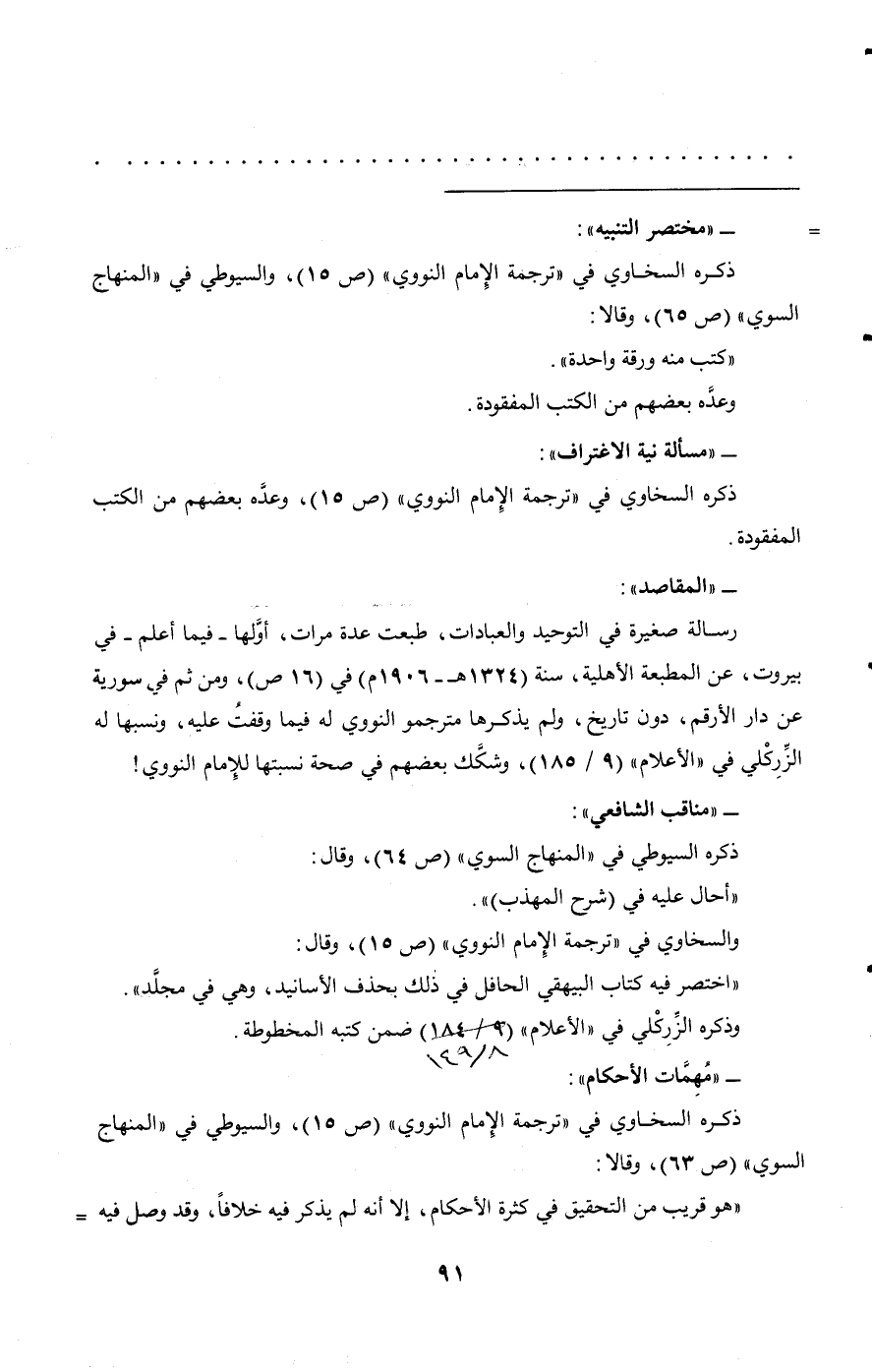 هذا ما وقفتُ عليه من كتب الإمام النووي بعد الفحص والتتبع، ورأيتُ له كتباً أخرى، بعضها أشك في صحة نسبتها للأمام النووي، وأخرى مستلة من بعض كتبه، وثالثة ليست له على وجه اليقين.