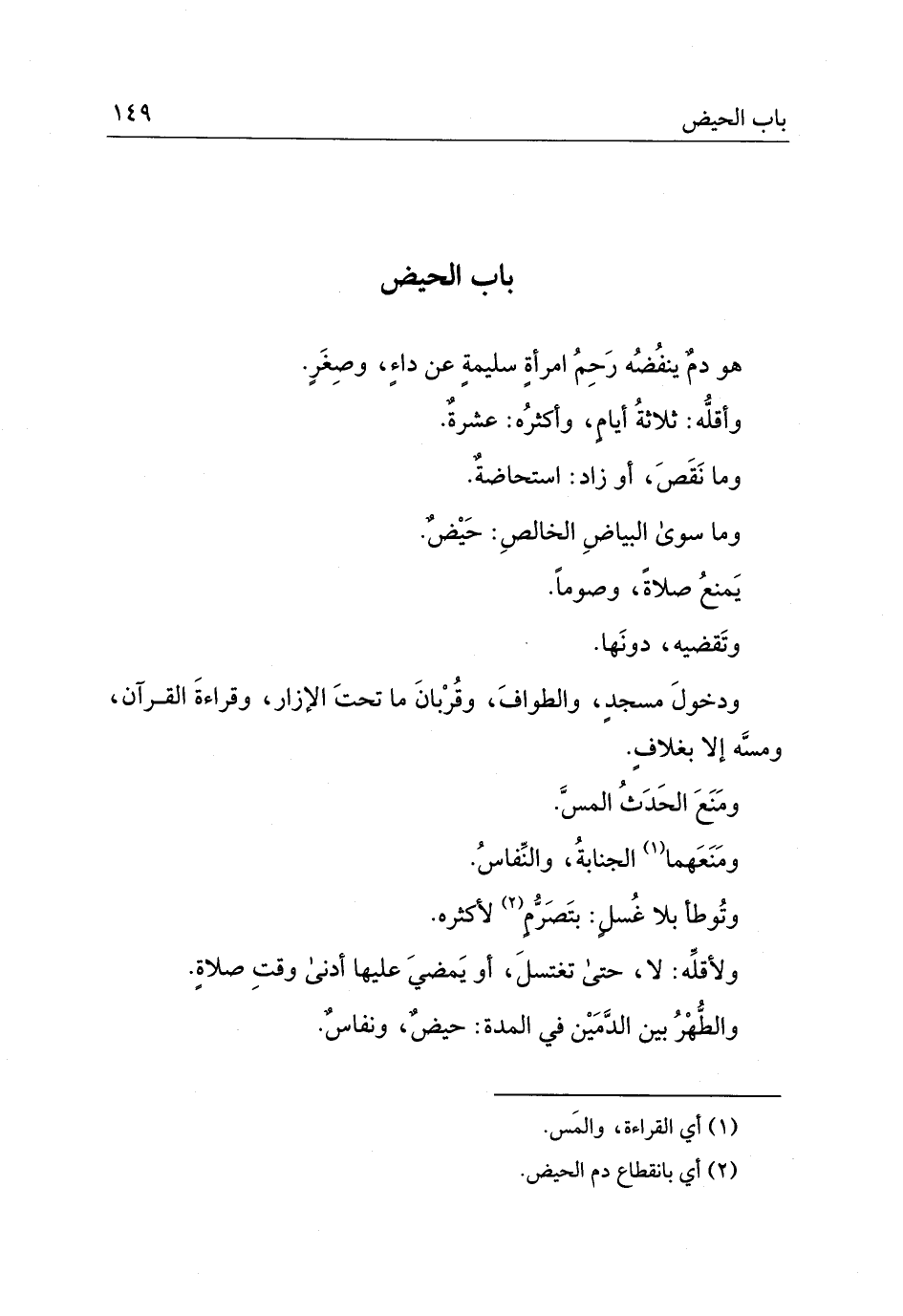 هو دمٌ ينفضه رحم امرأةٍ سليمةٍ عن داءٍ وصغرٍ