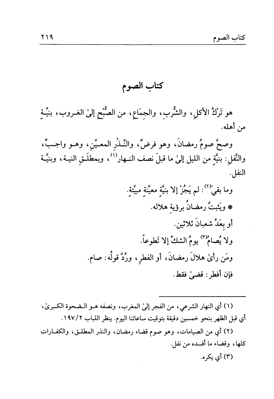 وصحّ صوم رمضان وهو فرضٌ والنّذر المعيّن وهو واجبٌ والنّفل بنيّةٍ من اللّيل إلى ما قبل نصف النّهار وبمطلق النّيّة ونيّة النّفل