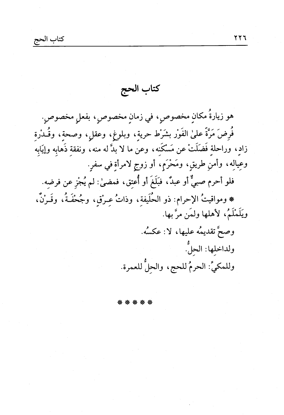 ومواقيت الإحرام ذو الحليفة وذات عرقٍ وجحفة وقرنٌ ويلملم لأهلها ولمن مرّ بها