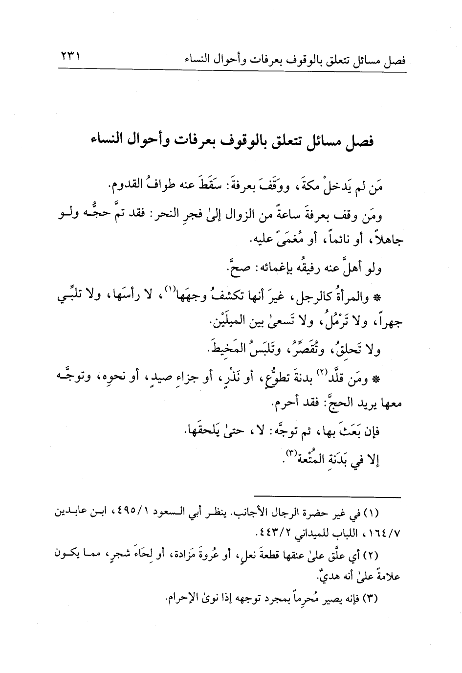 فصلٌ مسائل تتعلق بالوقوف بعرفات وأحوال النساء