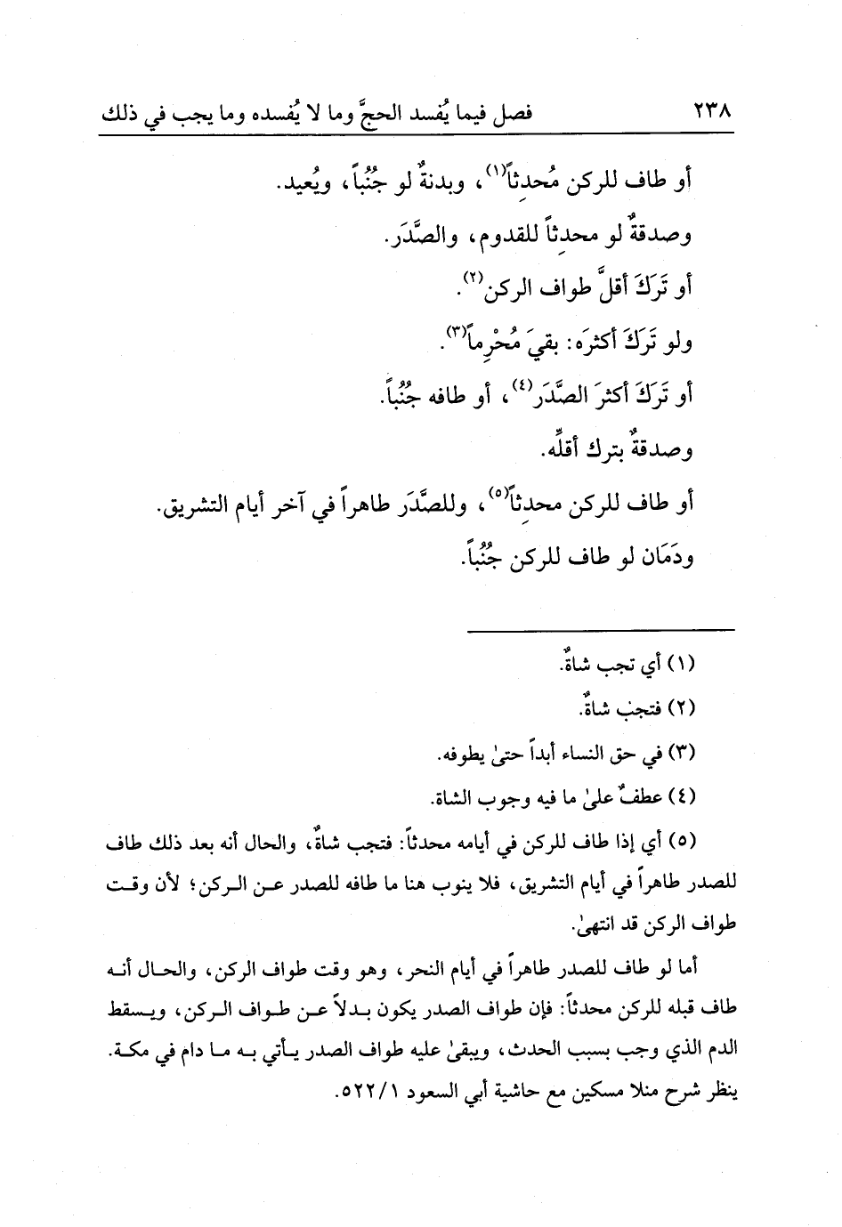 أو طاف للرّكن محدثًا وللصّدر طاهرًا في آخر أيّام التّشريق