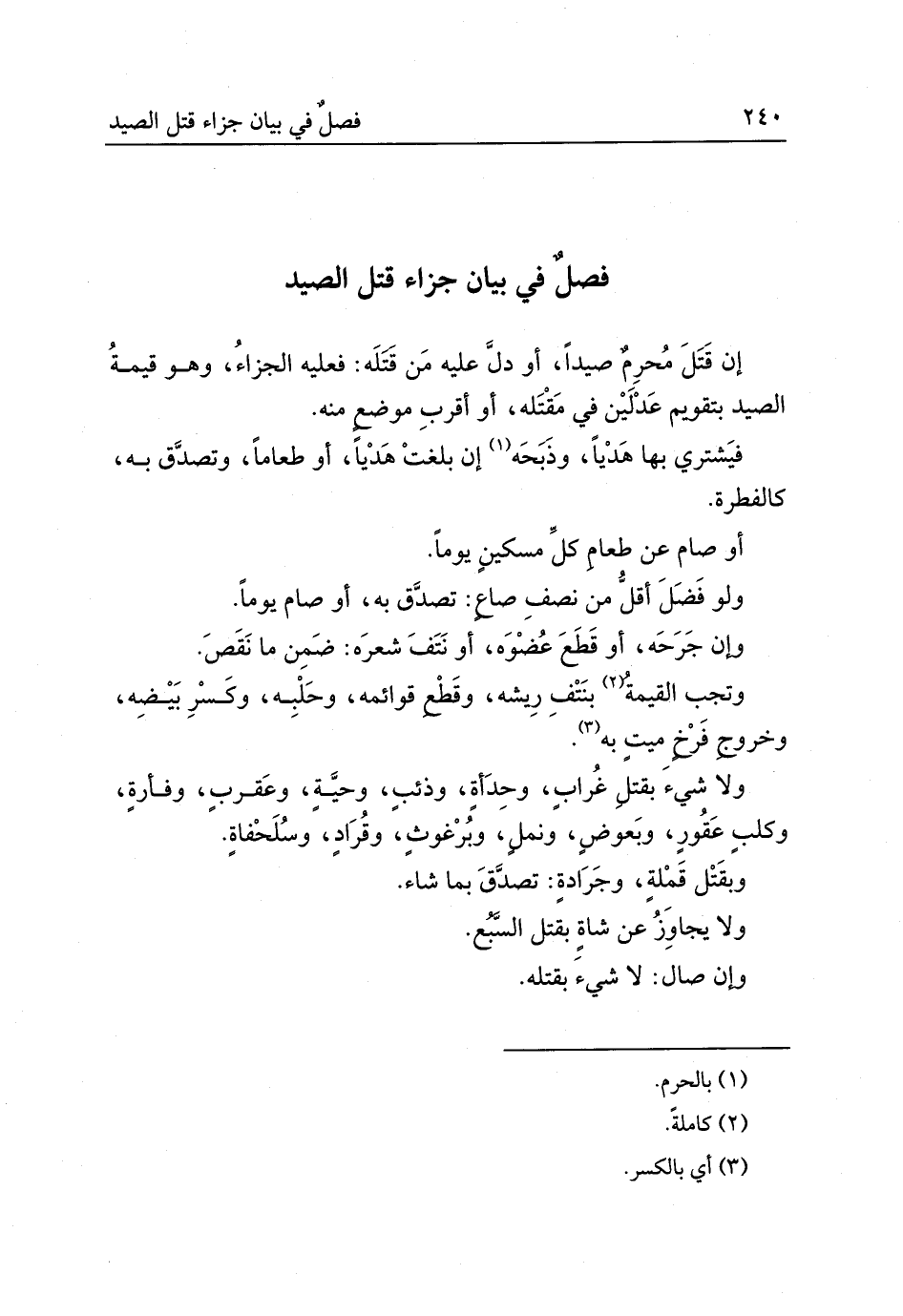 فصلٌ في بيان جزاء قتل الصيد