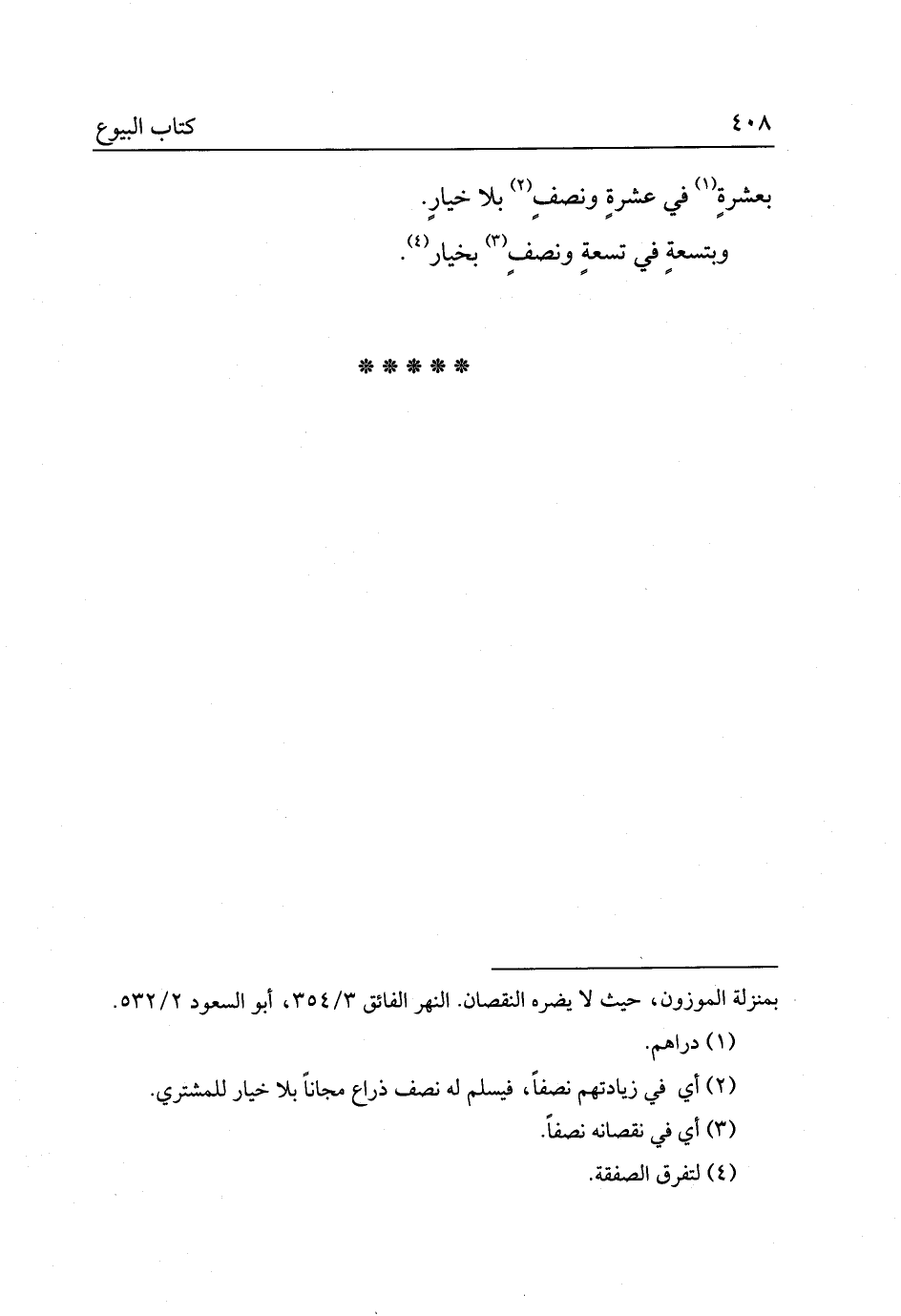 بعشرةٍ في عشرةٍ ونصفٍ بلا خيارٍ
