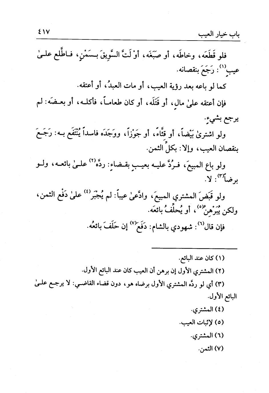 فلو قطعه أو خاطه أو صبغه أو لتّ السّويق بسمنٍ فاطّلع على عيبٍ رجع بنقصانه