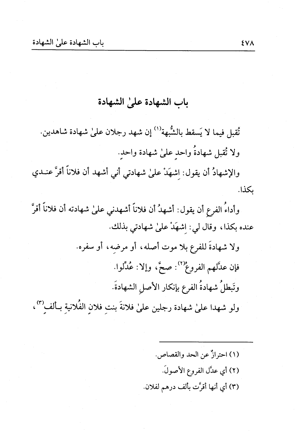تقبل فيما لا يسقط بالشّبهة إن شهد رجلان على شهادة شاهدين