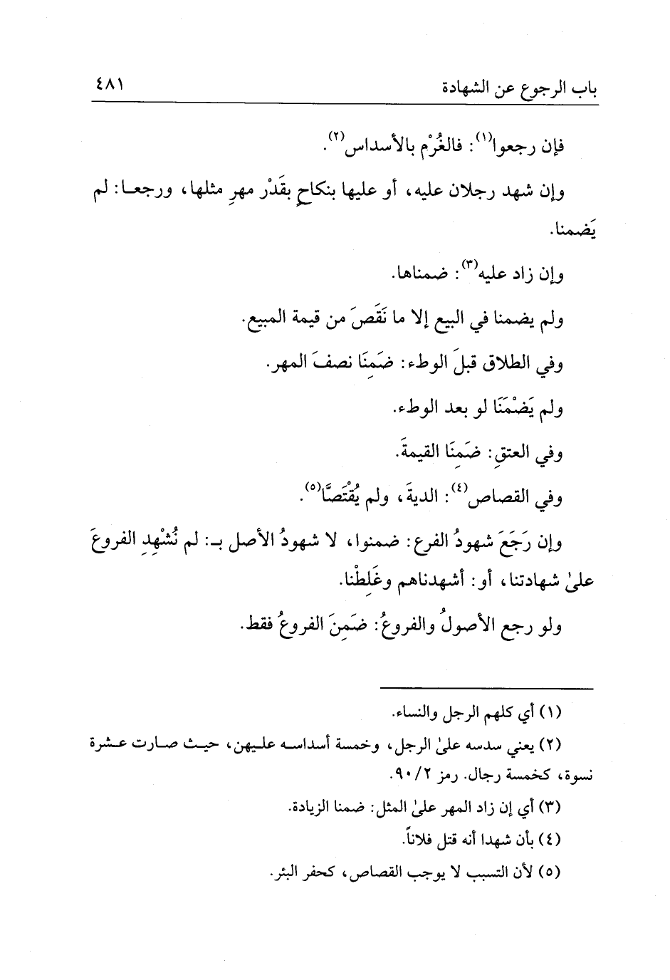 وإن رجع شهود الفرع ضمنوا لا شهود الأصل بلم نشهد الفروع على شهادتنا أو أشهدناهم وغلطنا
