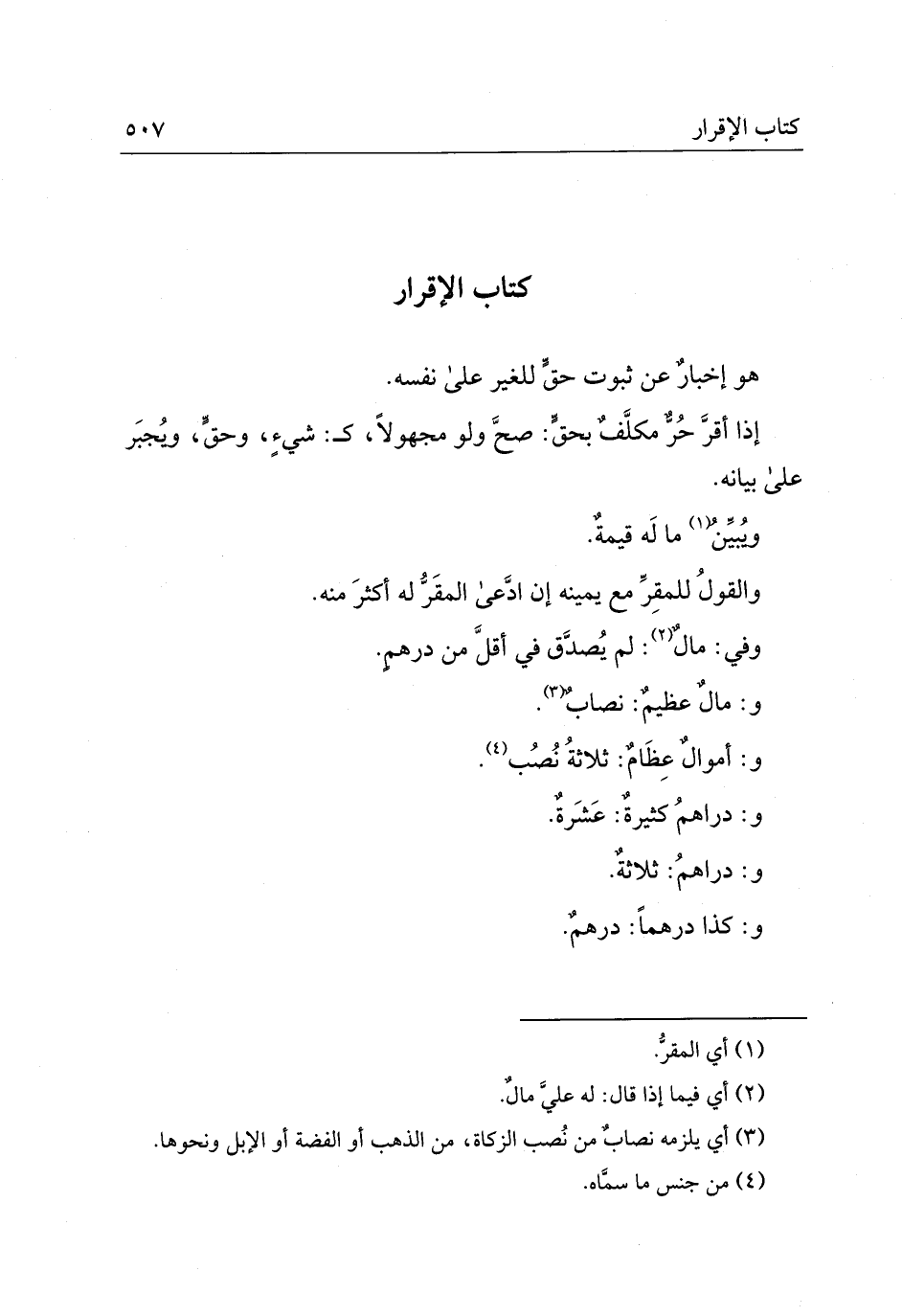 إذا أقرّ حرٌّ مكلّفٌ بحقٍّ صحّ ولو مجهولًا كـ شيءٍ وحقٍّ ويجبر على بيانه