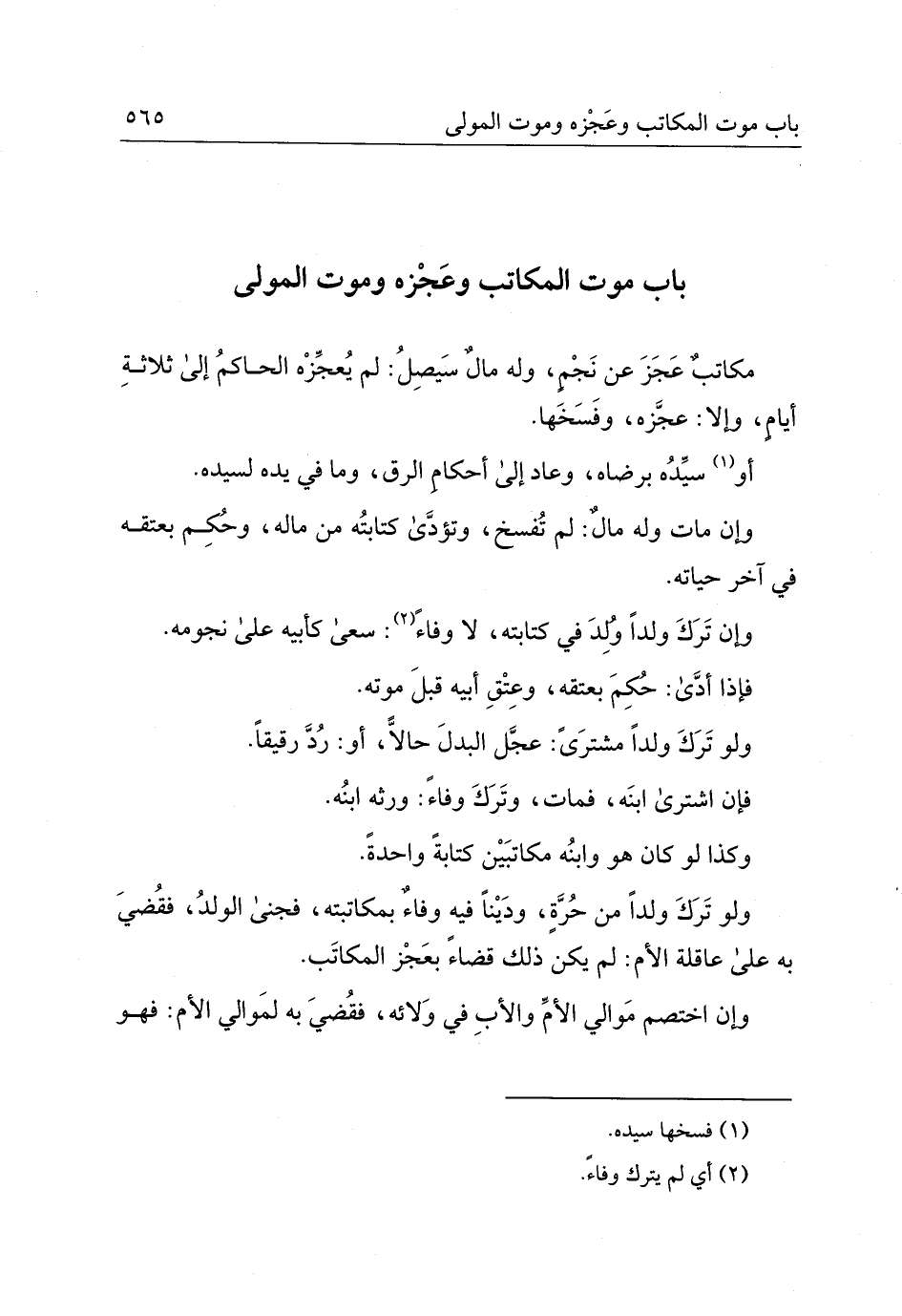 وإن ترك ولدًا ولد في كتابته لا وفاء سعى كأبيه على نجومه