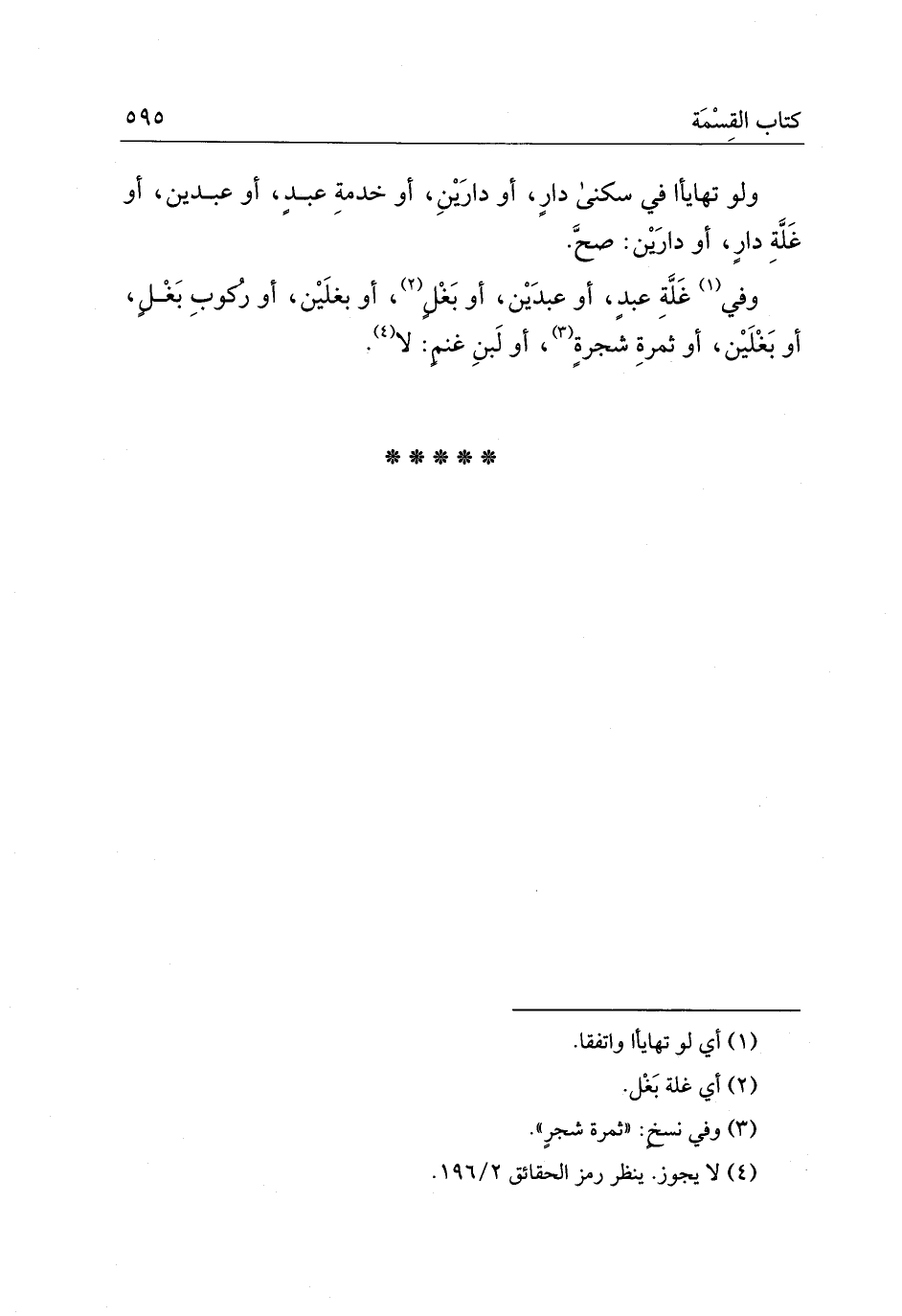 ولو تهايآ في سكنى دارٍ، أو دارين أو خدمة عبدٍ أو عبدين، أو غلّة دارٍ أو دارين صحّ