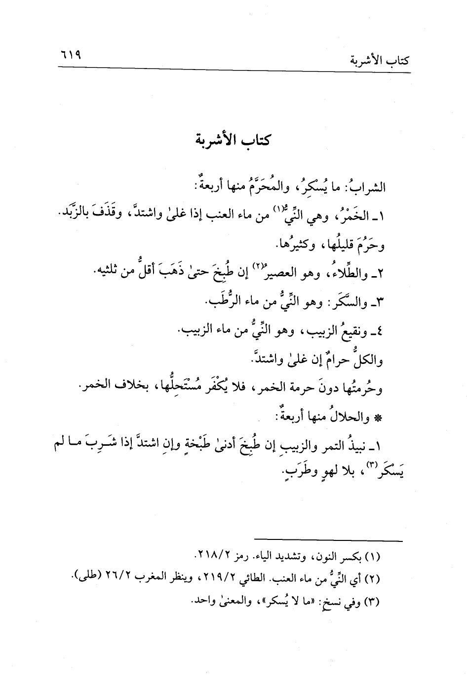 1 - الخمر، وهي النّيء من ماء العنب إذا غلا واشتدّ وقذف بالزّبد وحرم قليلها وكثيرها
