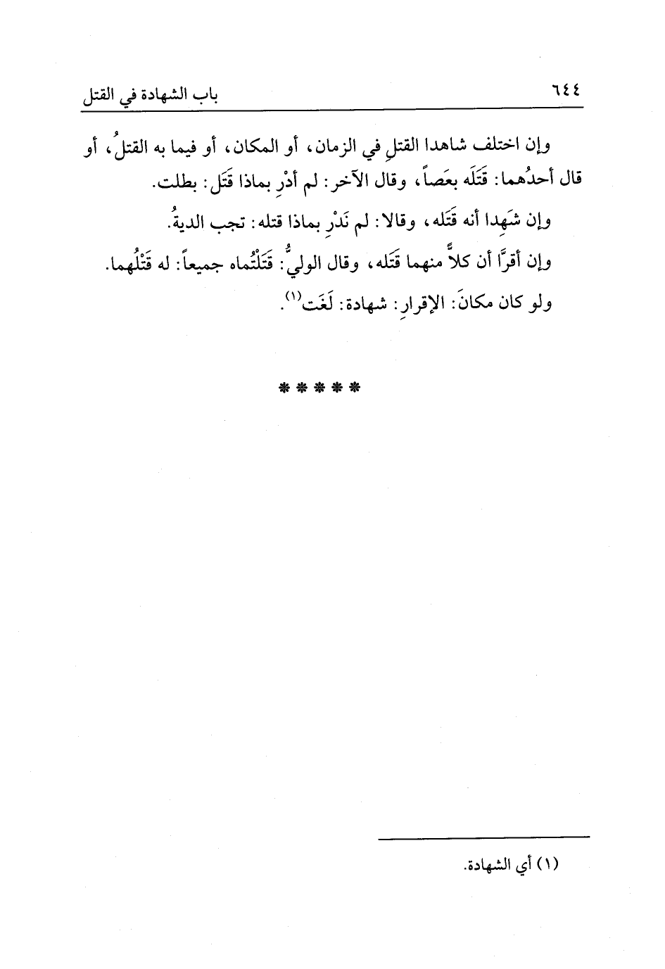 وإن اختلف شاهدا القتل في الزّمان أو المكان أو فيما وقع به القتل أو قال أحدهما قتله بعصًا، وقال الآخر لم أدر بماذا قتله بطلت