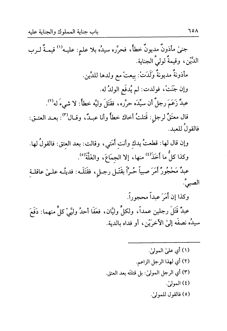 عبدٌ قتل رجلين عمدًا ولكلٍّ وليّان فعفا أحد وليّي كلٍّ منهما دفع سيّده نصفه إلى الآخرين أو فداه بالدّية