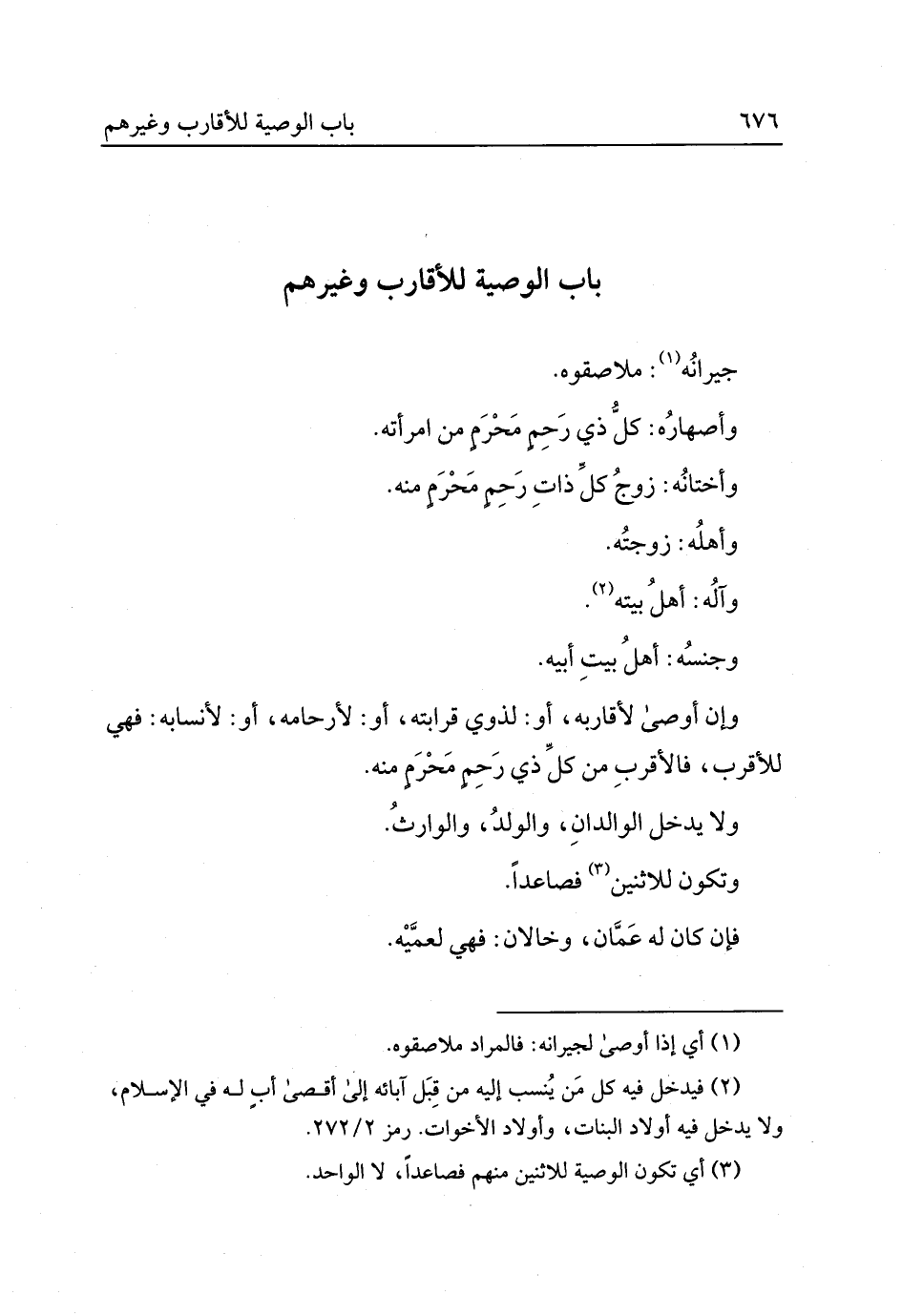 وإن أوصى لأقاربه ولذوي قرابته أو لأرحامه أو لأنسابه فهي للأقرب فالأقرب من كلّ ذي رحمٍ محرمٍ منه