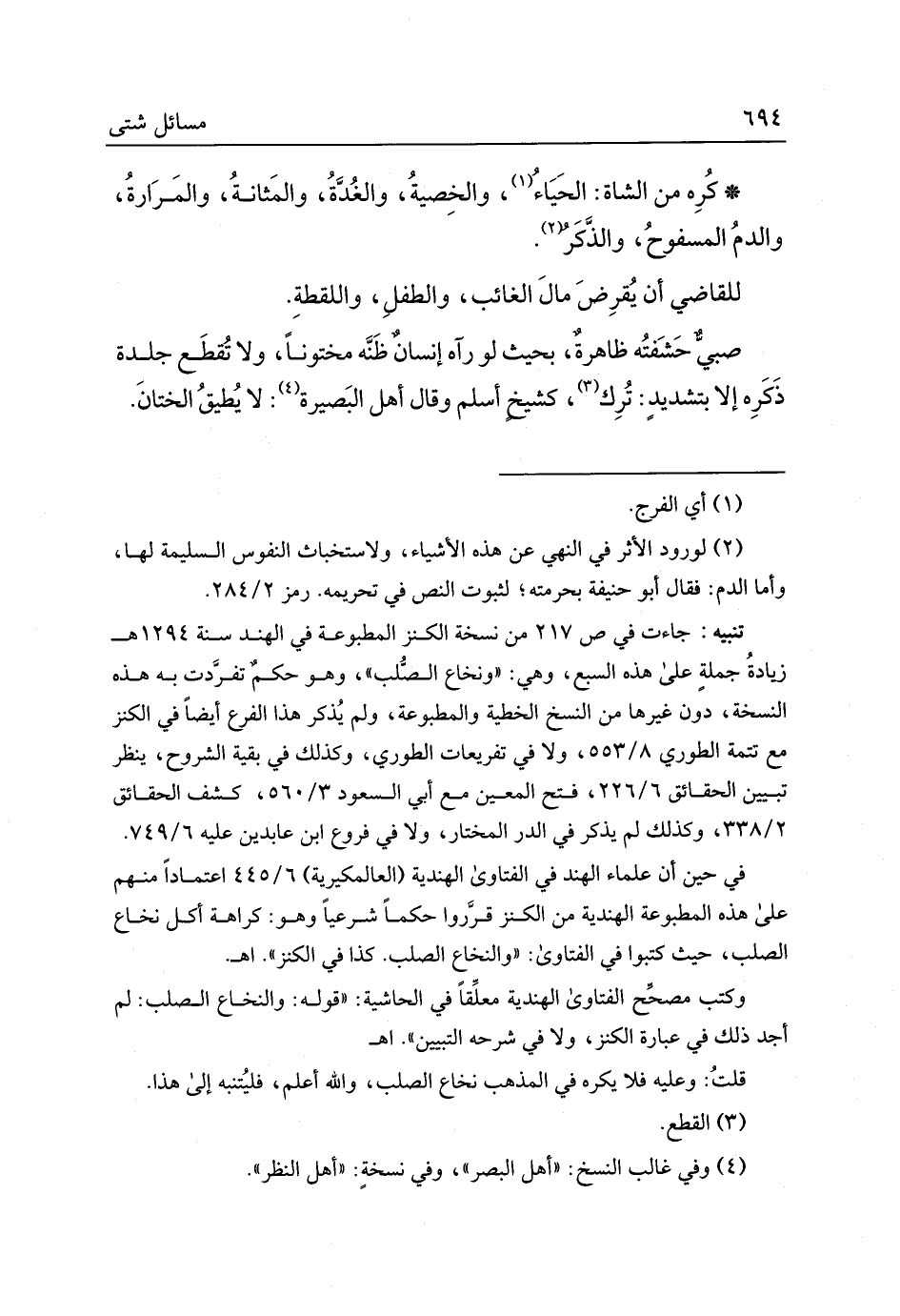 صبيٌّ حشفته ظاهرةٌ بحيث لو رآه إنسانٌ ظنّه مختونًا ولا يقطع جلدة ذكره إلّا بتشديدٍ ترك كشيخٍ أسلم وقال أهل النّظر لا يطيق الختان