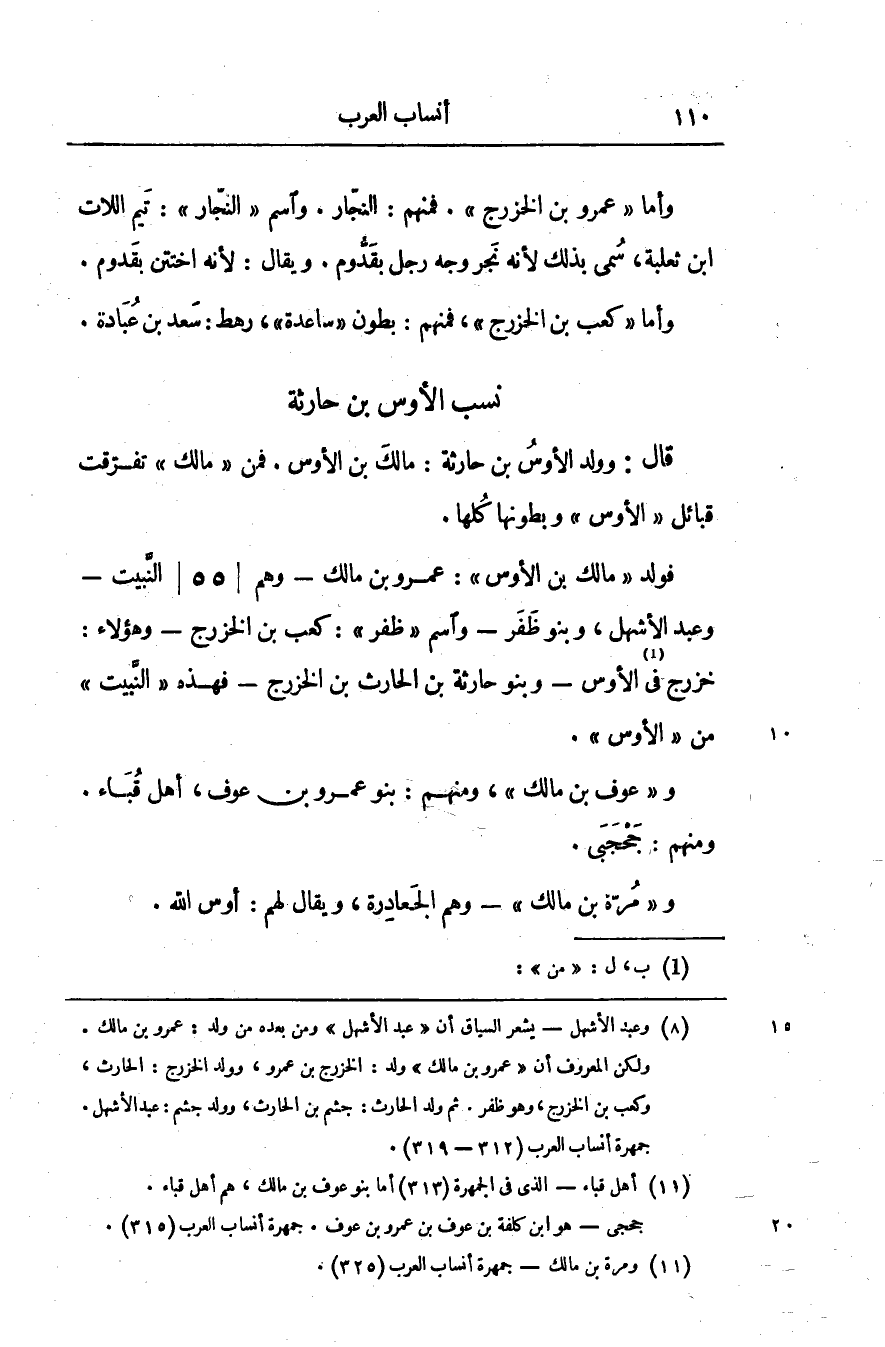 خزرج في [1] الأوس- وبنو حارثة بن الحارث بن الخزرج- فهذه «النّبيت» من «الأوس» .