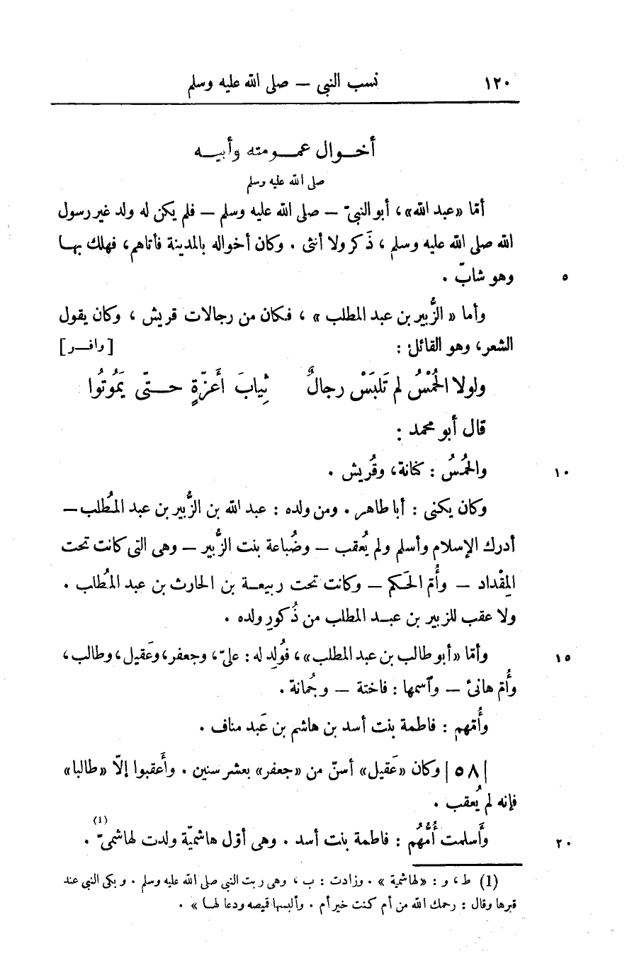 وأما «الزّبير بن عبد المطلب» ، فكان من رجالات قريش، وكان يقول الشعر، وهو القائل: [وافر]