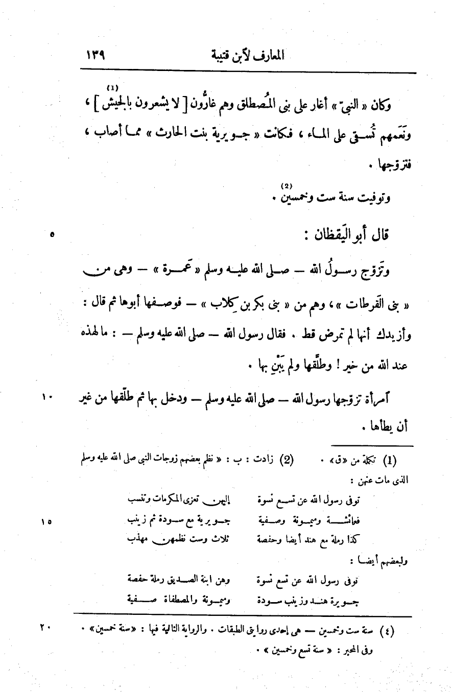 [2] زادت: ب: «نظم بعضهم زوجات النبي صلّى الله عليه وسلم الّذي مات عنهن: