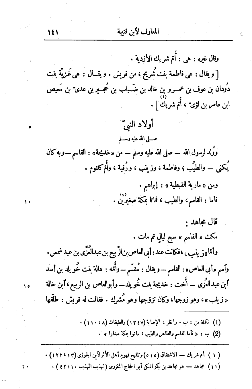 [2] ب: «فأما القاسم والطاهر والطيب، ماتوا بمكة صغارا» .
