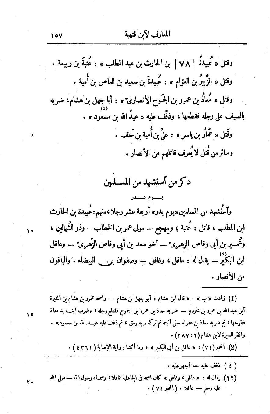وقتل «عبيدة/ 78/ بن الحارث بن عبد المطلب» : عتبة بن ربيعة.