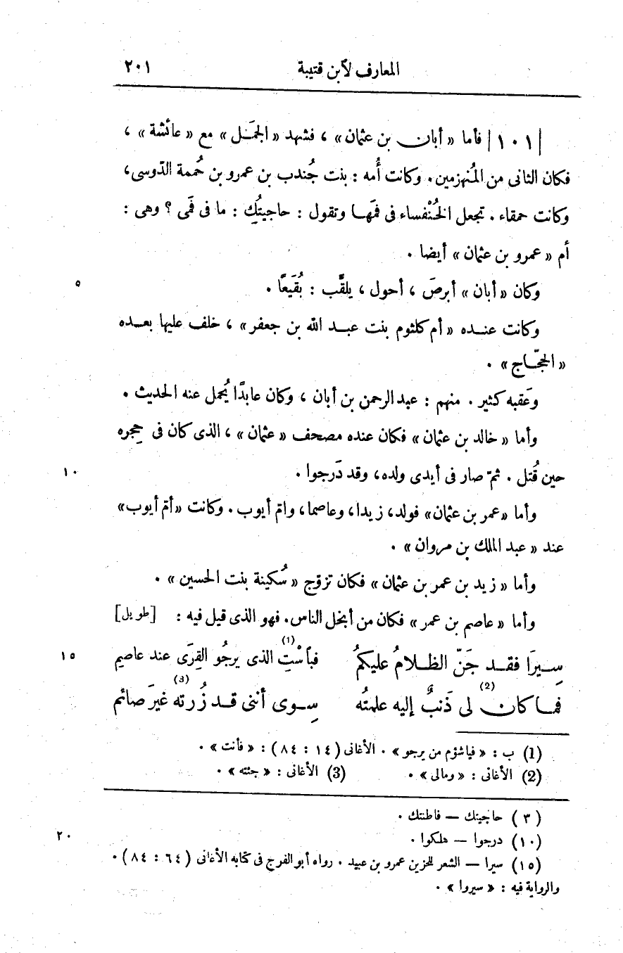 وأما «خالد بن عثمان» فكان عنده مصحف «عثمان» ، الّذي كان في حجره حين قتل. ثمّ صار في أيدي ولده، وقد درجوا. «2» وأما «عمر بن عثمان» فولد، زيدا، وعاصما، وامّ أيوب. وكانت «أمّ أيوب» عند «عبد الملك بن مروان» .