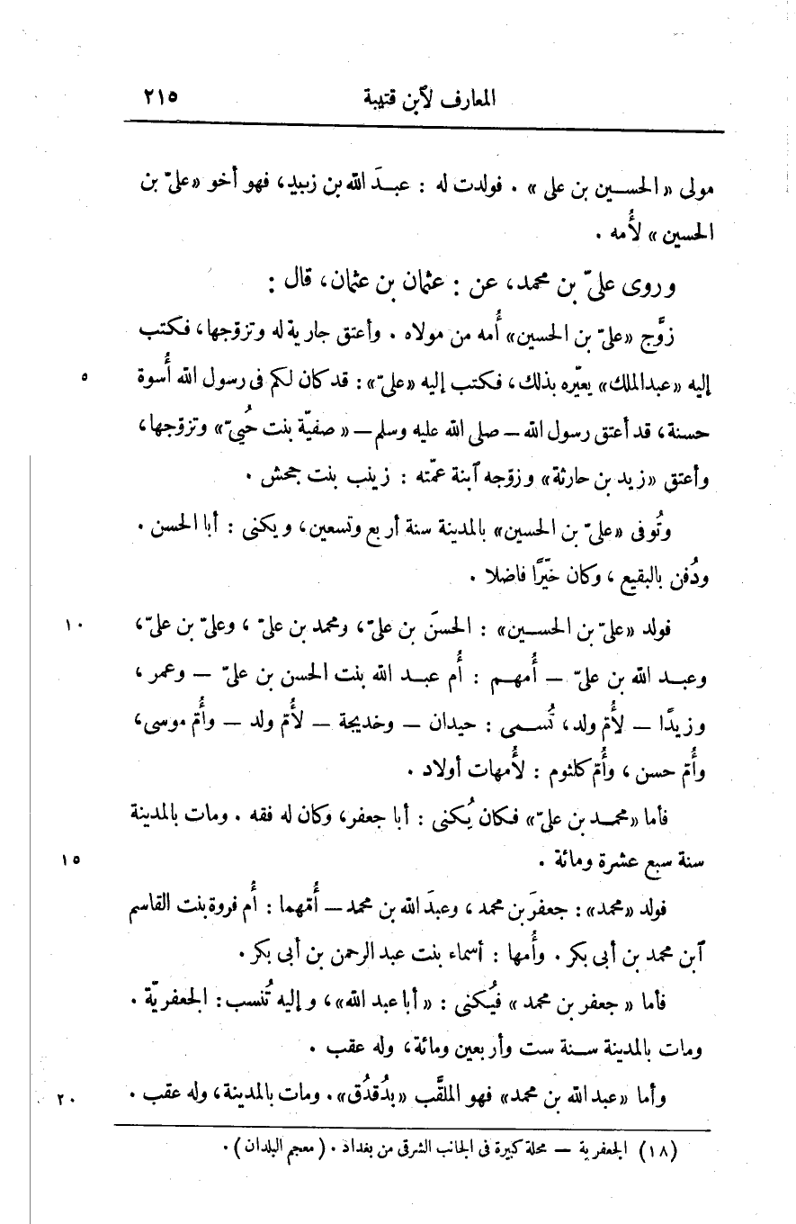 فأما «جعفر بن محمد» فيكنى: «أبا عبد الله» ، وإليه تنسب: الجعفريّة. «1» ومات بالمدينة سنة ست وأربعين ومائة، وله عقب.
